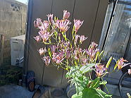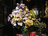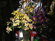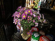 | 14時27分、小菊が繁茂し過ぎたので、嫁さんが一部を剪定して仏花にしました。 |