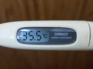 | 今朝の天気は晴れのち曇りです。体温は35.5℃でした。 |