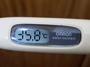 | 今朝の天気は晴れです。体温は35.6℃でした。 |