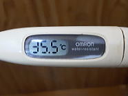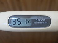 | 今朝の天気は晴れのち曇りです。体温は昨日と同じく 35.1℃でした。 |