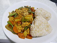 13時07分、昼食は鶏団子入りのカレーライスです。