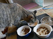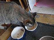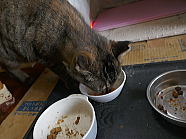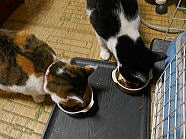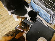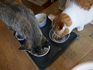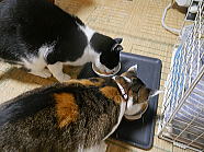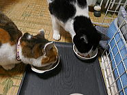 | 14時42分、ミィミィとチャーのお昼ごはんタイムです。 |