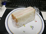 10時18分、朝食は丸大ハンバーグサンド1個です。