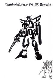 | 今日の昼のイメージ習字は、『機動戦士ガンダムF91』 (シルエットモチーフはF91) です。 |