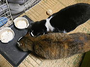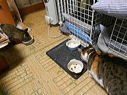 | 6時36分、ミィミィとフックの朝ごはんタイムです。 |