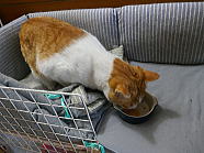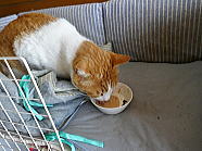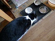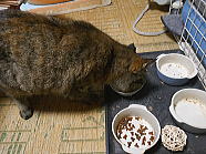 | 8時01分、チャーの朝ごはんタイムです。 |