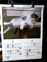 | 17時39分、寝室の猫カレンダーに予定を記入しました。 |