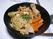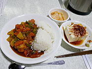 | 14時18分、昼食は鶏の手羽元肉入りのカレーライスと冷や奴、大根の唐辛子漬けです。ご馳走様でした。 |