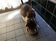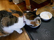 | ミィミィとチャーの朝ごはん光景です。 |