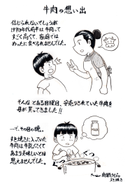 今朝の筆ペン落書きは牛肉の想い出語りです。