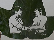 | 7時32分、各SNSに『はいからさんが通る』に登場する鬼島森吾の葉っぱアートをアップしました。 |