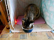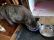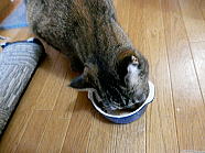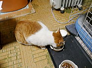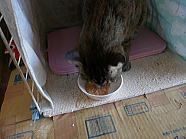 | 同じく5時25分、チャーの朝ごはんタイムです。 |