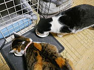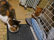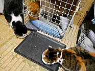 | 5時25分、ミィミィとコロの朝ごはんタイムです。 |