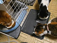 | ミィミィとチャーとコロの朝ごはん光景です。 |