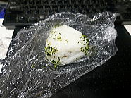 | 9時55分、朝食はおにぎり1個です。ご馳走様でした。 |