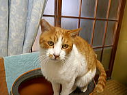 | 7時28分、チャーの朝ごはんタイムです。 |