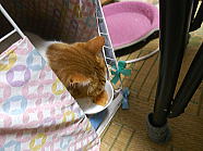 | 7時25分、ミィミィの朝ごはんタイムです。 |