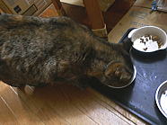 | 7時26分、チャーの朝ごはんタイムです。 |