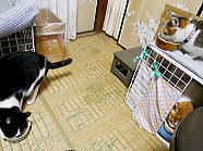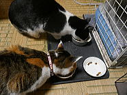 | 7時24分、ミィミィとコロの朝ごはんタイムです。 |