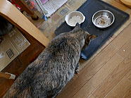 | 8時56分、猫の食事皿を綺麗にしました。 |