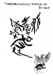 | 今日の昼のイメージ習字は『超電動ロボ 鉄人28号FX』 (シルエットモチーフは鉄人28号FXと合体した鉄人17号フェニックス) をアップしました。 |