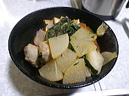 20時21分、晩ごはんのおかずは豚汁です。