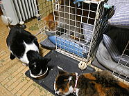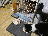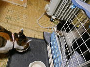 | 7時43分、ミィミィとコロの朝ごはんタイムです。 |