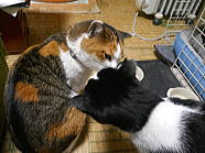 | 21時27分、ミィミィとチャーが1つのちぐらの中で仲良く寝ていました。おやすみなさい。 |