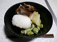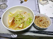 13時08分、昼食はあり合わせ丼です。