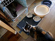 | ミィミィとコロの朝ごはん光景です。 |