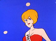 | マクロス艦橋に用意された特設ステージに立ち、『愛・おぼえていますか』を歌うミンメイ。とってもえらい。 |