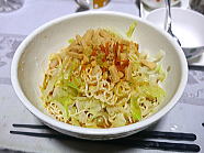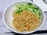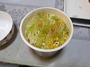 | 19時47分、晩ごはんは、ノンフライ麺のニンニク醤油味ラーメンです。ご馳走様でした。 |