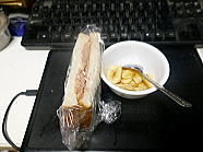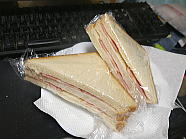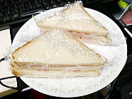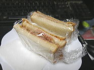 | 10時28分、朝食はハムサンド1個です。ご馳走様でした。 |
