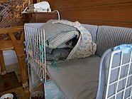 | ちぐらの中で朝ごはんを食べるチャーです。 |