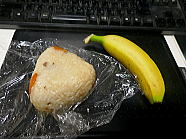 | 11時52分、朝食は いか天 (冷凍食品) 入りのおにぎり 1個と―― |