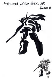 | 昼のイメージ習字は『機動戦士ガンダム 第08MS小隊』 (シルエットモチーフは陸戦型ガンダム) です。 |