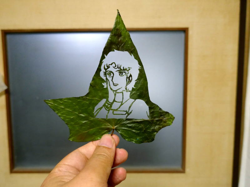 ●『ビデオ戦士レザリオン』に登場するシルベスタ将軍の秘書、モンローの葉っぱアートです。 (UP-DATE:2025.11.02)