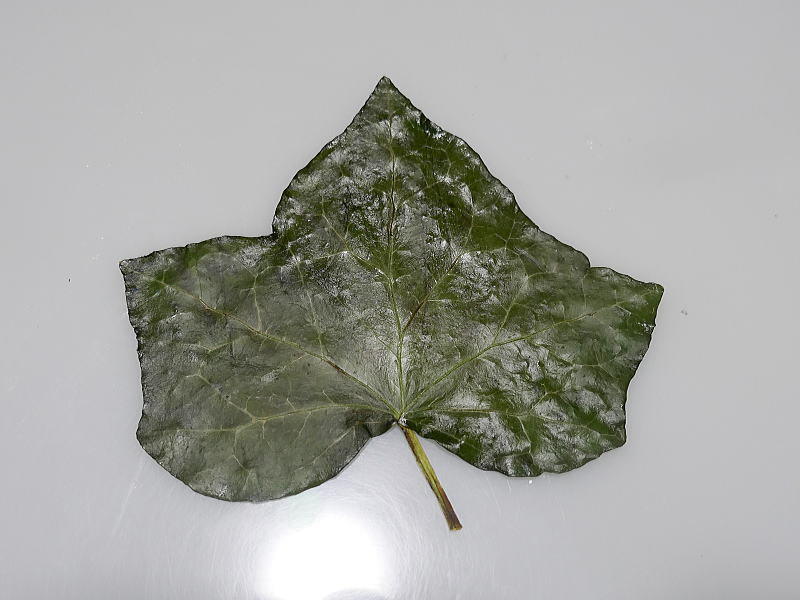 今回使用したのは、実家の近所で採取した蔦の葉を、5日間グリセリン水溶液に浸け、