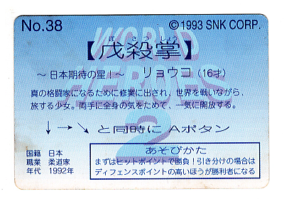 ●『ワールドヒーローズ2』のカードゲーム第2弾です。向かって右側がカードの裏面です。