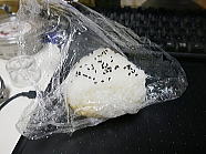 | 10時27分、朝食は味噌カツ(※冷凍食品)を1個入れたおにぎり1個です。ご馳走様でした。 |