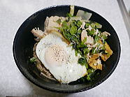 | 13時29分、遅いブランチは牛肉と牛蒡の柳川丼です。ご馳走様でした。 |