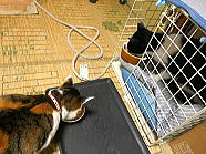 | 6時59分、コロの朝ごはんタイムです。 |
