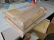 | 嫁さんが猫たち用に こしらえた段ボールの巣箱です。ほとんど『できるかな』の世界です。 |