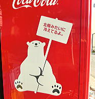 帰宅の途中、高城神社の裏手にある酒屋の自販機に可愛いシロクマくんを見つけました。