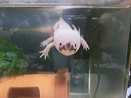 この品種はカラーバリエーションが豊富な事で有名で、ここだけでもグリーン、アプリコット、マスカットの3色のカエルたちがいました。