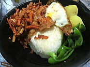 | 晩ごはんは鶏皮串 (冷凍) 丼です。ご馳走様でした。 |