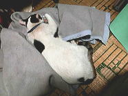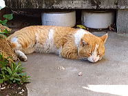 | 食後、ベランダに行ってみると、総司が無防備な恰好でグデッとしていました。 |