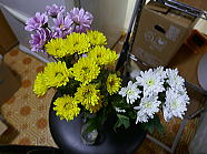 | 仏花の水を換えた後、猫のトイレを綺麗にしました。 |