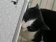 | 布団の中でくすぶっていると、愛猫のミィミィが起こしに来てくれました。 |