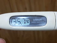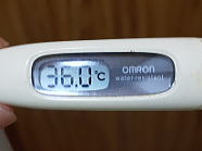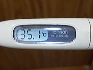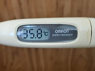 | 今朝の天気は雨のち曇りです。体温は35.9℃でした。 |